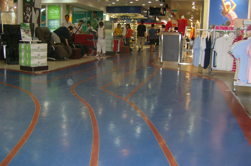 PVC運動地板是采用聚氯乙烯材料專門為運動場地開發的一種地板,具體來說就是以聚氯乙烯及其共聚樹脂為主要原料,加入填料、增塑劑、穩定劑、著色劑等輔料,在片狀連續基材上,經涂敷工藝或經壓延、擠出或擠壓工藝生產而成。一般是由多層結構疊壓而成,一般有耐磨層(含UV處理)、玻璃纖維層、彈性發泡層、基層等。